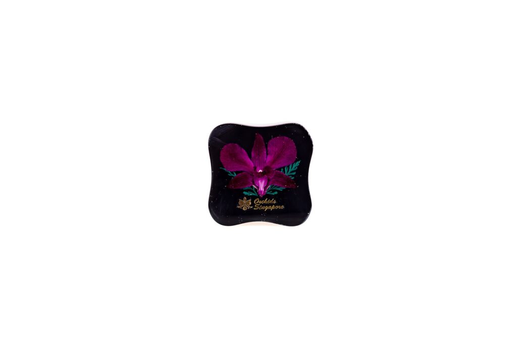 Paperweight, Preserved Orchid Clear Smooth Surface Weight:112grams Width:5.7cm Height: 3.3cm Thickness: 5.2cm