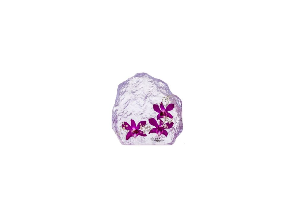 Corporate Plaques, Preserved Orchids with Customized Text in Resin Texture Weight: 540grams Width: 13.5cm Height: 15cm Thickness: 3cm