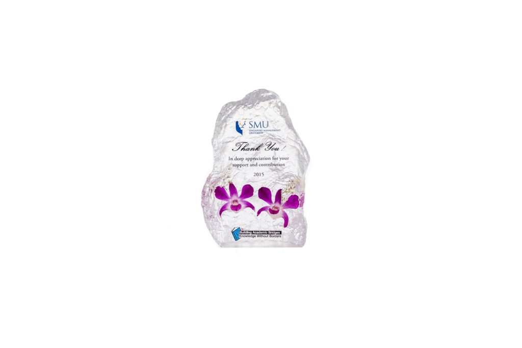 Corporate Plaques, Preserved Orchids with Customized Text in Resin Texture Weight: 451grams Width: 10cm Height: 15.5cm Thickness: 3.5cm
